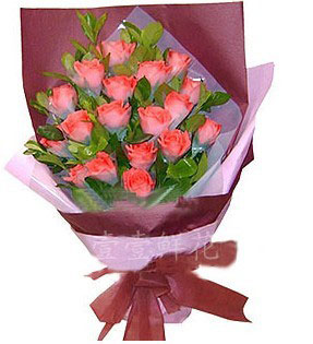 [ 材 料 ] 19枝粉玫瑰,栀子叶间插。
